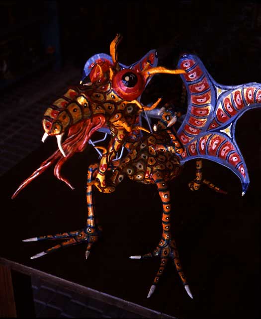 Las figuras que vimos representaban dragones, venados, conejos, armadillos, sirenas, diablos, ángeles, animales con caras de otros animales o seres humanos, personas con caras de animales, criaturas parecidas a reptiles, y mucho más. Todas estaban pintadas de colores inusuales y hasta chocantes. Entre nuestras múltiples compras seleccionamos una maravillosa pieza que representa una serpiente enrollada en un cacto, con un colibrí tomando el néctar de su flor. Fue un placer enorme conocer a estos artistas modestos pero talentosos y, a nuestro modo, participar en la tradición de los alebrijes.
