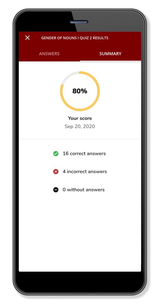 Our goal is to teach you Spanish, so even if you score low you have the ability to go back and review the questions you got wrong and make corrections to your answers. You can then resubmit the test to improve your score.