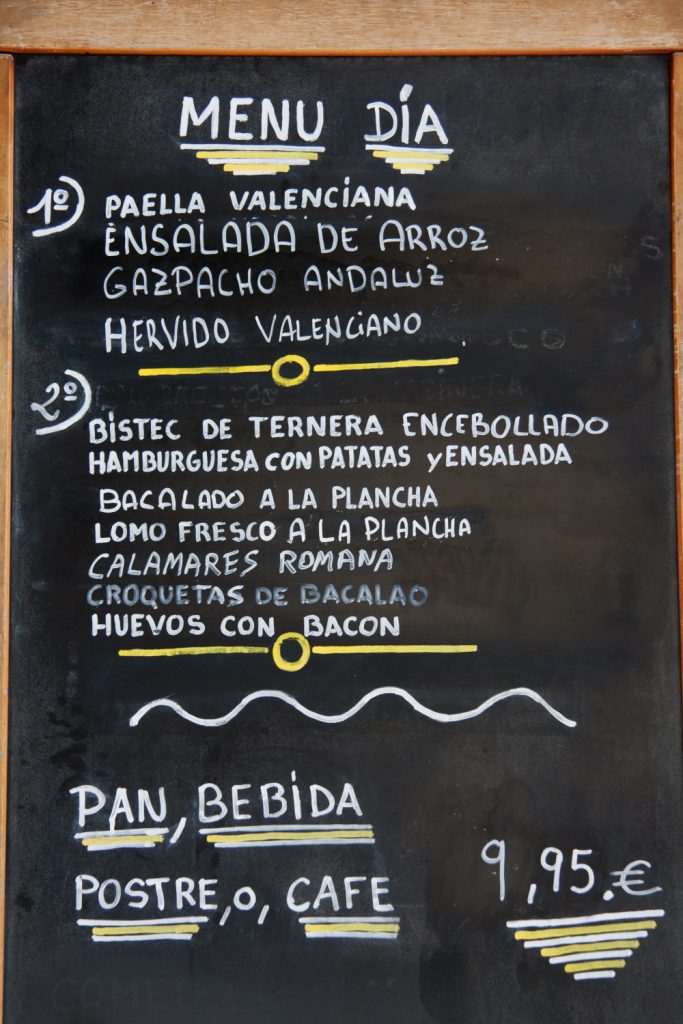 A menú del día will usually consist of a few dishes, with different options to choose from for each one. For example, for the first dish you might have the option of a soup or salad.