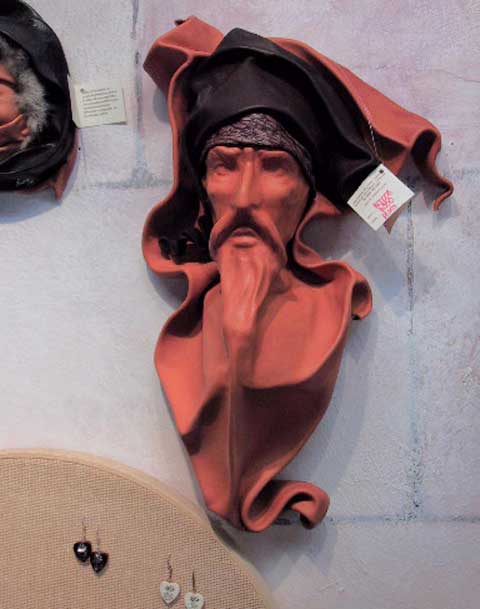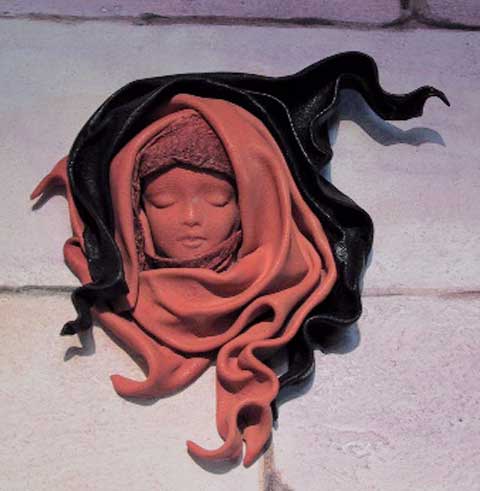 Tal fue el caso cuando descubrimos las esculturas de piel de Loa y Rak en su galería de Mazatlán, México. Trabajando con pieles curtidas y teñidas de vaca, cerdo, cabra y hasta pescado, esculpen hermosas máscaras, rostros, sirenas y desnudos. Muchas piezas incorporan chales, sombreros o cabellos rizados soplados por el viento que dan la impresión de movimiento. Quizás nuestras piezas preferidas sean los desnudos que dan la espalda al observador y cuyos cabellos se mezclan con un fondo vibrante y ondulado.