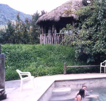 Llegamos a los manantiales térmicos en unas dos horas, y nos dispusimos a hacer nuestros experimentos. Jurando cumplir con las más rigurosas normas del método científico, calibramos nuestros trajes de baño y zapatillas de hule. Iba a ser un día arduo y difícil que incluiría 8 piscinas termales de diferentes temperaturas, 3 piscinas frías y una de agua de río, y todas exigían ser probadas con cuidado. Había que poner a prueba la afirmación de que las piscinas son “minerales, cristalinas, hipertérmicas, hipertónicas, sulfatadas y alcalinas, lo que les da la calidad de ocasionar efectos curativos en sus usuarios, porque son volcánicas en origen, en tanto claras”. No estábamos seguros del significado de todo esto, pero las aguas eran muy agradables.