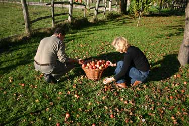 afternoons among laughter and conversations, anecdotes and legends, picking up the precious apples. The baskets loaded with these