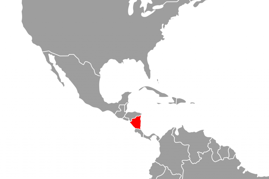 Nicaragua lies just south of Honduras, and north of Costa Rica in Central America.